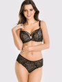 - Jet black lace overlay – intricate floral embroidery layered over a nude base creates a striking depth.