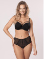 The Mefemi Desire padded bra is a sophisticated piece of women's lingerie designed for seamless daily wear and striking evening looks. Crafted from smooth, high-quality microfiber, this black underwired bra provides a rounded shape and excellent lift for medium to full busts, ranging from B to H cups. Its sleek finish makes it invisible under fitted clothing, while the gold-tone hardware adds a touch of luxury.