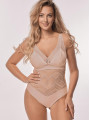 The Mefemi Desire bodysuit in a sophisticated cappuccino hue is the ultimate expression of "second skin" luxury. This nude lace bodysuit features an exquisite tattoo-effect design, achieved by layering textured cappuccino lace over a soft beige mesh. Designed for women who seek a minimalist yet provocative aesthetic, this wire-free lingerie bodysuit offers a seamless blend of comfort and high-end style.