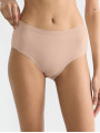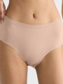 The Sloggi Go Daily Midi is a 3-pack of mid-rise 95% organic cotton briefs in warm beige. This set of everyday women's underwear features a classic midi cut with wider sides for moderate coverage and a comfortable fit. The brushed cotton fabric feels exceptionally soft, while the flat elastic waistband provides a smooth finish under clothing.
