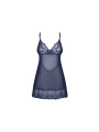 The Obsessive Exquisite MP Blue Nightdress babydoll is a sophisticated piece of women's lingerie designed for sensuality and comfort. This dark blue babydoll features sheer mesh paired with luxury elastic lace. The lightweight design provides a graceful silhouette, while gold hardware adds a premium touch to this dark blue piece.