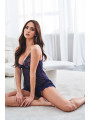 Sizing: This Obsessive ExquisiteMP Blue lingerie runs true to size with a flexible and flowy fit. Pair this nightdress with matching thongs to create a complete dark blue lingerie set.