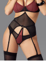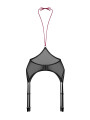 The Obsessive Exquisite Parisel garter belt is a classy piece of women's lingerie designed to highlight your curves with its high-waisted silhouette. This black garter belt features sheer mesh fabric and a contrasting burgundy neck strap for a unique look. It provides a comfortable fit while securely holding your favorite stockings.