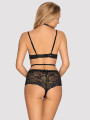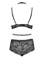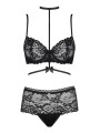 The Obsessive Raquelia set is a stunning piece of women's lingerie that combines classic elegance with a modern, sexy edge. This black set features delicate floral lace and a unique torso-wrapping choker that draws the eye. Crafted with underwired support and stretchy materials, this coordinated black lingerie is designed to provide a flattering silhouette for special moments.