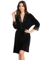 Black Viscose Robe with Lace Trim Mediolano Natalia 05075