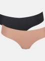 The Sloggi Zero Feel Hipstring is a laser-cut no-show thong underwear sold in a two-pack of warm nude and black. This women's lingerie features 360-degree stretch Japanese microfiber with a brushed matte finish to sit flush against the skin. The recycled fabric construction creates a smooth profile under fitted garments without digging.
