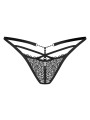 The Obsessive Iliosa thong is a captivating piece of women's lingerie designed for a bold, minimalist look. This black thong features delicate floral lace combined with elegant straps and shiny silver accents. Crafted from high-quality fabric, this black lace thong provides a comfortable, form-fitting silhouette suitable for special occasions or daily elegance.