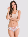 Mediolano Delice II 19091 White Brazilian Panties embody elegance and sensuality. The pure white design features soft mesh and delicate lace, creating a refined and stylish look. Unique decorative straps add a playful touch to the design. The low-rise fit and double-layer tulle back provide a comfortable fit, while a cotton gusset ensures practicality. Packaged in a branded box, these panties make a thoughtful gift. Perfect for those who appreciate style and comfort in every detail.