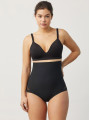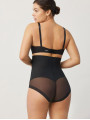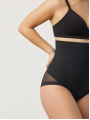 The Ysabel Mora 19611 control briefs are high-waisted black shapewear designed for maximum abdominal support. This versatile women's underwear features a central reinforcement piece for a visible flat stomach effect, while sheer mesh panels provide a sophisticated thong look. Premium women's lingerie that balances function and style.