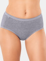 The Sloggi Basic+ Midi is a mid-rise pair of cotton midi briefs made from 95% cotton and 5% elastane, offered in grey melange and warm beige. This essential women's underwear uses specialized core-spun yarn, where cotton fibers completely wrap around the elastane to protect your skin from synthetic contact while maintaining a flexible fit. The result is a soft fabric that resists pilling and keeps its structure through regular machine cycles.