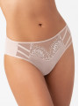 The Gorsenia K498/1 Paradise panties in beige are a masterclass in technical lingerie design, merging high-end European aesthetics with a practical "no-show" finish. These beige panties feature a sophisticated Brazilian cut with a mid-rise waist, specifically engineered to contour the hips without digging. Unlike basic nude lingerie, this beige panties model is elevated by eyelash lace trim and a signature metal ring detail at the back, offering a refined fit that remains invisible under light-colored clothing.