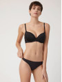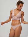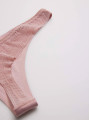 The Ysabel Mora 19673 thong balances everyday practicality with a touch of romance. This women's underwear piece from the Special You collection features a smooth opaque front and a flat lace back. Available in nude, black, and powder pink, it combines women's lingerie aesthetics with the invisibility you need under tight pants. The Ysabel Mora 19673 is a low-rise thong featuring a smooth microfiber front and a laser-cut floral lace back for a no-show look under fitted clothing.