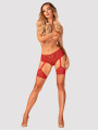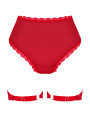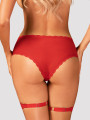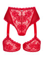 The Obsessive Belovya garter panties are a sensual piece of women's lingerie designed to highlight natural curves. This red lingerie set features a combination of transparent mesh and floral lace for a bold, feminine look. The high-waisted red panties include attached garters to create a coordinated and tempting appearance for any special occasion.