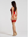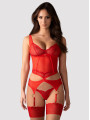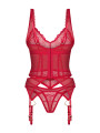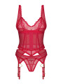The Obsessive Cupide Desir corset set is a captivating piece of women's lingerie that combines soft lace with sheer mesh. This red corset features heart-shaped gold connectors and a rose gold pendant for a sensual look. Designed for confidence, this red set offers a supportive and comfortable fit for any special evening.