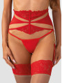 The Obsessive Matildea garter belt is a sophisticated and elegant piece of women's lingerie designed for a striking look. This red garter belt features intricate floral lace combined with a modern network of straps and cutouts. The sheer mesh fabric and supportive vertical boning create a beautiful, structured silhouette that enhances confidence.