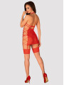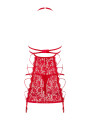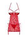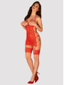 The Obsessive Rediosa chemise is a sultry piece of women's lingerie designed for confident styling. This red chemise features intricate floral lace and a unique open-cup design. Crafted from high-quality European materials, this red lingerie includes a matching thong and adjustable garter straps for a complete, provocative look.