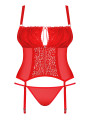 The Obsessive Blossmina corset is an alluring piece of women's lingerie designed for romantic evenings. This red corset combines high-quality floral lace with smooth, stretchy fabric for a flattering look. The red lingerie set includes a matching thong and adjustable garter straps, making it a beautiful and versatile choice for your collection.