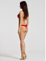 The Obsessive Aliosa lingerie set is a striking and elegant choice for women's lingerie that highlights your natural shape. This red lingerie set features a combination of smooth, shiny material and delicate floral lace. The red set includes an underwired bra and matching thong for a perfectly coordinated, sensual look.