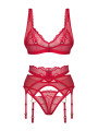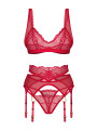 The Obsessive Cupide Desir lingerie set is an alluring 3-piece collection of women's lingerie designed for confidence and elegance. This red set features a sheer bralette, a matching thong, and a structured garter belt. Crafted from transparent mesh, it offers a modern, sensual look for any special occasion or romantic evening.