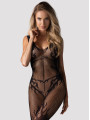 The Obsessive F241 bodystocking is a bold piece of women's lingerie designed for both confidence and lasting comfort. This black bodystocking features a unique combination of fine sheer mesh and decorative ornamental patterns. Crafted from premium European materials, this black teddy provides a flexible fit that highlights your curves while remaining breathable.