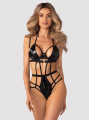 Open crotch — Adds a seductive element to this daring piece of black lingerie.