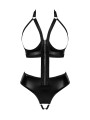 The Obsessive Norides bodysuit is a sultry piece of women's lingerie designed for confident women. This black teddy features a daring cupless design and a functional front zipper. Combining shiny wet-look fabric with sheer floral lace, the Obsessive Norides piece offers a provocative look while remaining comfortable for any special evening.