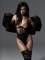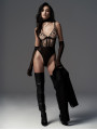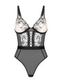 The Provocative Obsessive Exquisite Vila Blanes bodysuit is a ravishing piece of women's lingerie that combines sheer mesh with a nude-skin effect. This black bodysuit features intricate floral embroidery and bold front lacing for a confident, elegant look. The high-stretch fabric molds to your body, making this black lingerie piece a versatile choice for special evenings.