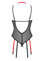 The Obsessive Glandez teddy is a provocative piece of women's lingerie designed for confident ladies who love the spotlight. This black teddy features a sheer mesh body with striking red accents and a crotchless design. The transparent fabric provides a form-fitting look that beautifully emphasizes your natural curves. Perfect for romantic evenings and special occasions.