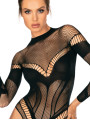 The Obsessive B135 bodysuit is a breathtaking piece of women's lingerie that blends modern geometric patterns with a classic, seductive aesthetic. This black teddy features a unique knitted fishnet material that highlights your natural curves while providing a flexible, comfortable fit. Whether for a special evening or personal confidence, this black bodysuit delivers a powerful visual impact with its intricate design and bold cutouts.