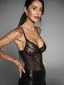 The Obsessive Exquisite Perisia bodysuit is a provocative piece of women's lingerie designed for confidence and seduction. This black bodysuit features intricate organic lace combined with weightless mesh for a stunning look. With its underwired cups and daring open access design, this piece offers a perfect balance of support and beauty.