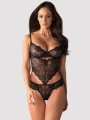 This black teddy combines feminine floral aesthetics with a modern silhouette. The Obsessive Alluria design uses a coordinated lace thong connection to emphasize your natural curves.