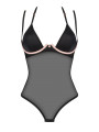 The Obsessive Selinne bodysuit is an exquisite piece of women's lingerie designed for a modern, elegant look. This black teddy features transparent mesh fabric accented with distinctive pink underwiring and double shoulder straps. It offers a structured design that highlights the figure while providing a comfortable, flexible fit for any occasion.