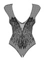 The Obsessive B112 bodysuit is a sultry piece of women's lingerie that combines a provocative open design with comfortable, high-stretch fabric. This black teddy features a deep V-neckline and a unique knitted wing pattern on the back. It is crafted from premium materials to ensure a smooth, body-hugging fit.