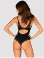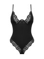 The Obsessive Bellastia teddy is a charming piece of women's lingerie that combines elegant floral lace with functional support. This black teddy features a plunging neckline and smooth, form-fitting fabric. Crafted with underwired cups, it provides a beautiful shape while the high-cut leg design elongates your silhouette.