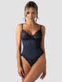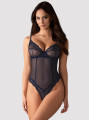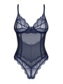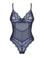 The Obsessive Exquisite MP Blue bodysuit is an alluring piece of women's lingerie designed for confidence. This blue piece features sheer mesh and organic lace with a provocative open access design. The underwired cups provide support, while the teddy silhouette creates a striking, seductive look for special evenings.