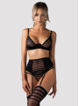 The Obsessive Exquisite Lune Bellis bra is a classy piece of women's lingerie designed for a modern, confident look. This black bra features transparent mesh with bold graphic stripes that create a unique visual effect. Crafted with underwired cups, it provides a natural shape while maintaining a light, airy feel. Perfect for special evenings.