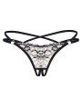 The Obsessive Exquisite Vila Blanes open thong is a sensual piece of women's lingerie designed for bold confidence. This black thong features intricate floral embroidery over sheer beige tulle, creating a striking visual contrast. Crafted with premium materials, this black piece from Vila Blanes combines elegant style with a comfortable, adjustable fit for special occasions.