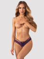 The Obsessive Vibres thong is a provocative piece of women's lingerie designed for those who value bold, modern style. This purple thong features sheer mesh panels and an intricate system of layered straps that accentuate the hips. The high-quality construction ensures a comfortable, form-fitting look for any special evening.
