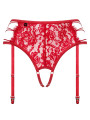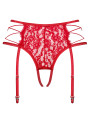 The Obsessive Rediosa garter belt is a striking piece of women's lingerie that combines a floral lace red garter belt with an integrated thong. This red set features a provocative open crotch design and elastic side straps. Crafted for confidence, this red lingerie piece by Obsessive Rediosa provides a daring look that feels comfortable and supportive.
