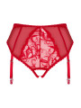 The Obsessive Dagmarie garter panty is a sultry piece of women's lingerie designed for confidence and comfort. This red panty features elegant lace with a provocative open crotch design. This red lingerie essential includes detachable straps to customize your look. Perfect for a romantic evening, this red panty emphasizes feminine shapes beautifully.