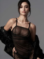 The Obsessive Exquisite Lune Bellis chemise set is a sophisticated piece of women's lingerie designed for modern elegance. This black chemise features transparent mesh with bold graphic stripes for a striking look. Crafted with a fitted silhouette, the black mesh highlights your natural curves while providing a comfortable feel. Perfect for romantic evenings and special occasions.