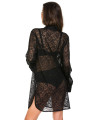 The Mediolano Deziro nightshirt is an elegant piece of women's lingerie designed for romantic evenings or sophisticated lounging. This black nightshirt features transparent floral lace paired with structured satin cuffs and a classic collar. The black design includes a functional button-down front, allowing for a versatile and confident look for any ladies wardrobe.