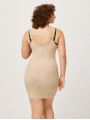 The Ysabel Mora 19628 shaping dress is a nude women's lingerie essential designed for a total slimming effect. This nude control dress features an open-bust design with floral lace, allowing you to wear your own bra while achieving a flat stomach. High-quality shaping underwear that stays invisible.