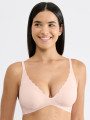 The Sloggi Zero Feel Bliss The Up P is a seamless wireless bra made from Japanese microfiber with a diamond-pattern graphic lace in pale blush. This piece of women's lingerie uses Viscomagic technology to support the bust without wires. Integrated gel components within the fabric layers provide a lifting effect and extra hold.